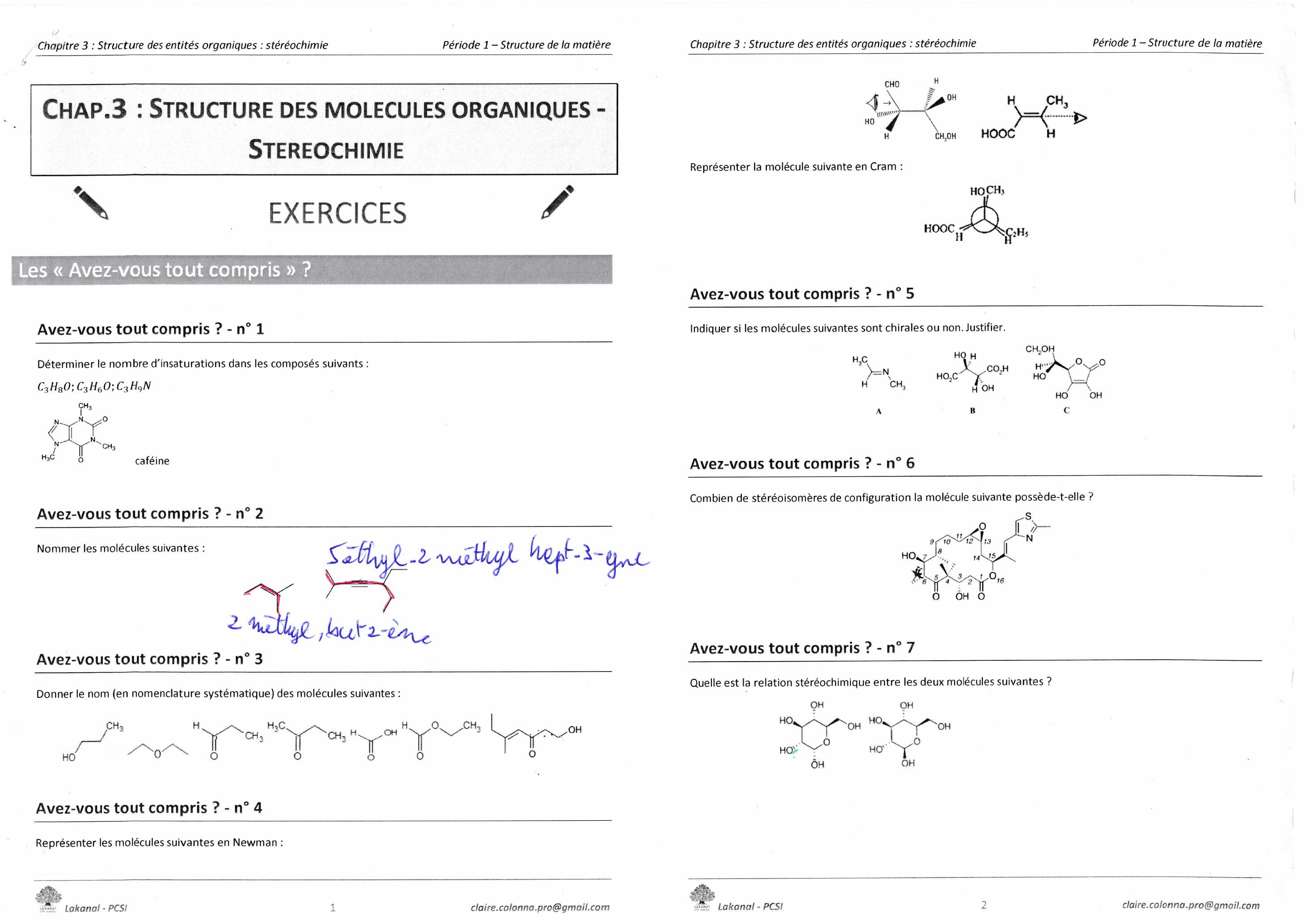 Chap. 3 : Structure des molécules organiques - Stéréochimie