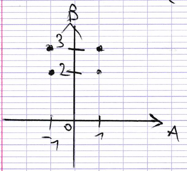 A × B = { ( a , b ) : a ∈ A , b ∈ B } A \times B = \{(a, b) : a \in A, b \in B\} A × B = {( a , b ) : a ∈ A , b ∈ B } Exemple : A = { − 1 , 0 , 1 } A = \{-1, 0, 1\} A = { − 1 , 0 , 1 } , B = { 2 , 3 } B = \{2, 3\} B = { 2 , 3 }