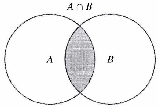 L’intersection de et , notée , est l’ensemble des éléments qui appartiennent à la fois à et à .