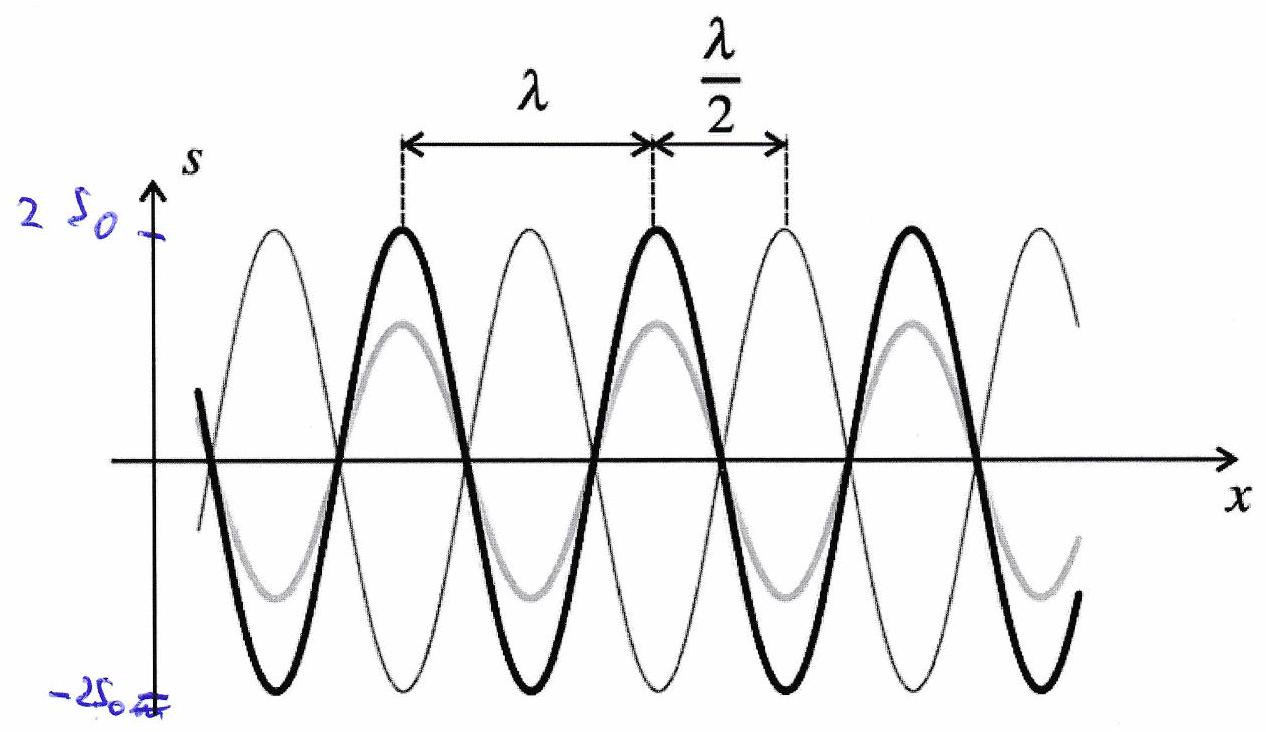 Figure 13.1: Onde stationnaire à trois instants différents : (en noir), (en gris clair) et (en gris foncé, trait fin).