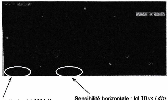 Sensibilité verticale : Ici 1V/div