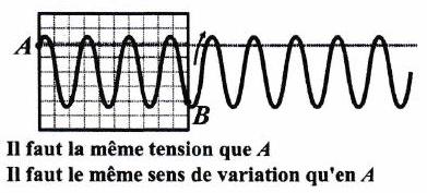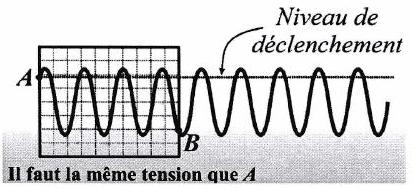Pour éviter cela, la deuxième acquisition ne doit pas démarrer à partir de . L’oscilloscope doit attendre de trouver un point de la courbe dans la même configuration que avant de lancer la deuxième acquisition.