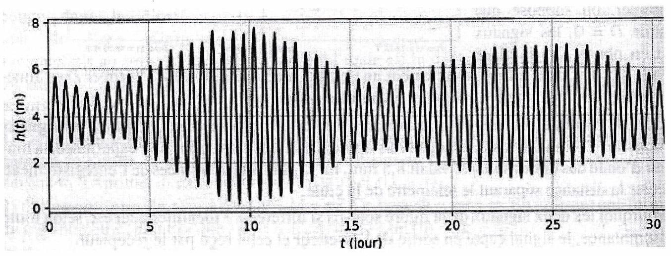 Donner les valeurs de et . Préciser la période des deux composantes sinusoïdales. 5. Ce modèle permet-il d’expliquer l’alternance de vives eaux et de mortes eaux ?