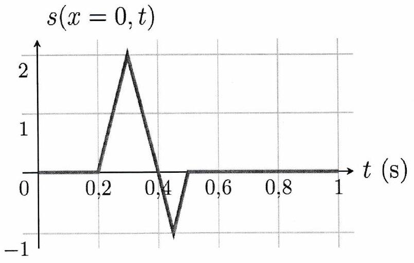 Une onde progressive se propage le long d’une corde à la célérité vers les croissants. En (point A de la corde), on crée le signal représenté sur le schéma. 2. Déterminer la durée et la longueur de la perturbation. Représenter le signal mesuré en avec . Tracer ensuite et .