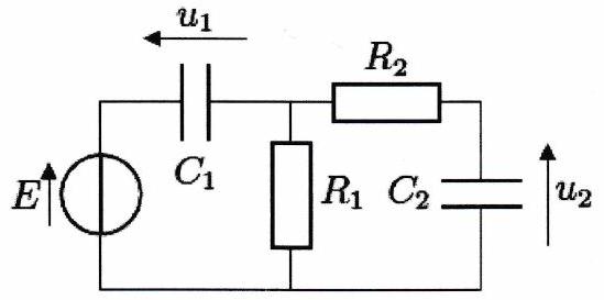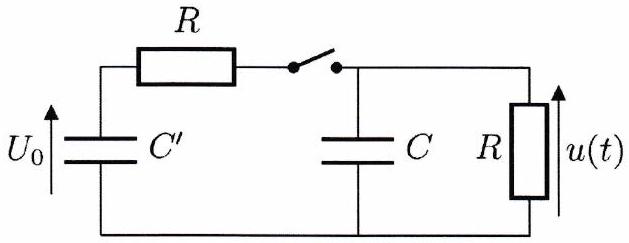 La capacité des deux condensateurs est la même . On prend et on pose . À l’instant , on ferme l’interrupteur.