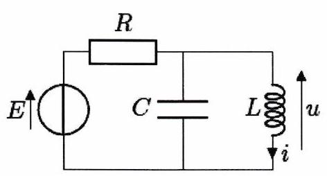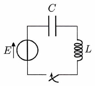 On étudie le circuit ci-contre. Pour , le condensateur est déchargé. À l’instant , on ferme l’interrupteur, ce qui connecte le générateur idéal de f.é.m constante au condensateur et à la bobine.