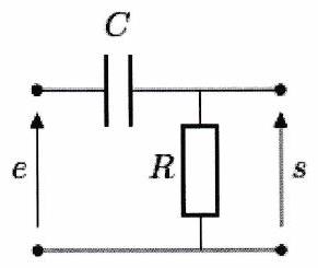 Avant d’envoyer le signal en entrée d’un haut-parleur tweeter chargé d’émettre les sons aigus, on place un filtre passe-haut du premier ordre de fréquence de coupure . On en donne la fonction de transfert :