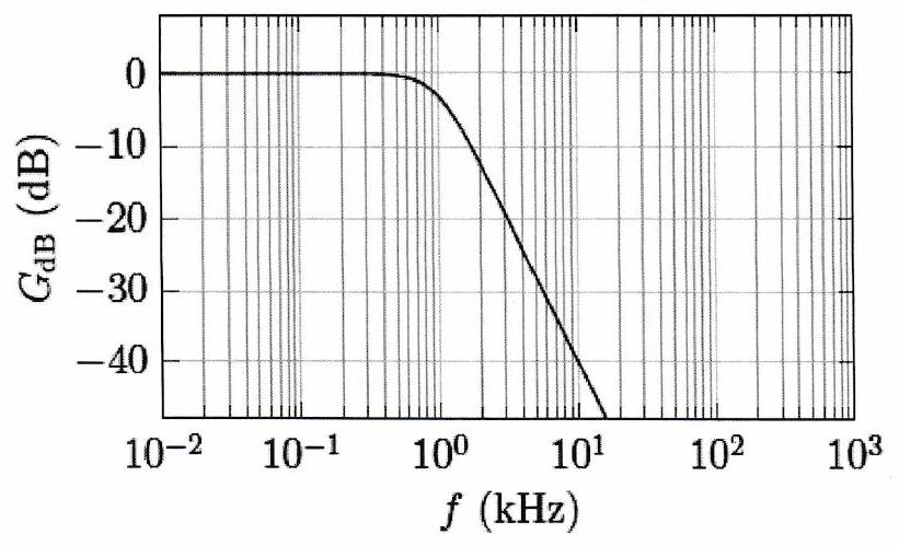 Un dispositif de traitement de signaux acoustiques nécessite la séparation des composantes sonores et ultrasonores. On souhaite éliminer les composantes ultrasonores : il faut donc réaliser un filtre passe-bas. Le cahier des charges du dispositif indique les caractéristiques suivantes: