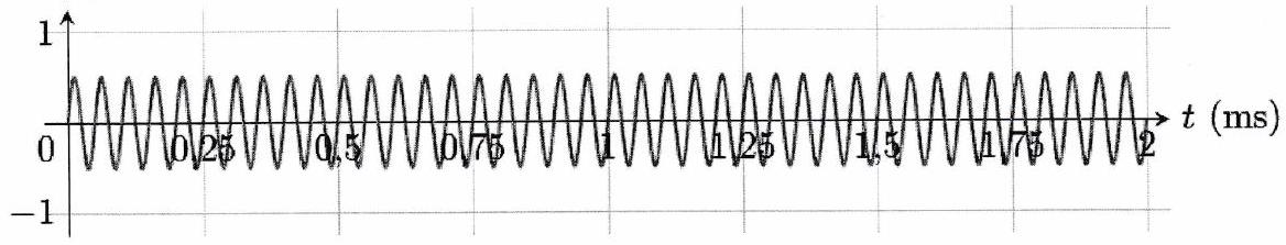 On étudie un signal triangulaire de période 1 ms et d’amplitude . Le développement en série de Fourier de ce signal triangulaire est donné par :
