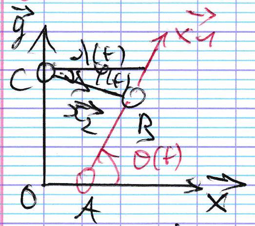 \quad \overrightarrow{AB} = R \vec{x}_{1} ⎩ ⎨ ⎧ O A = l x OC = L y CB = λ ( t ) x 2 A B = R x 1 lien λ ( t ) \lambda(t) λ ( t ) et θ ( t ) \theta(t) θ ( t )