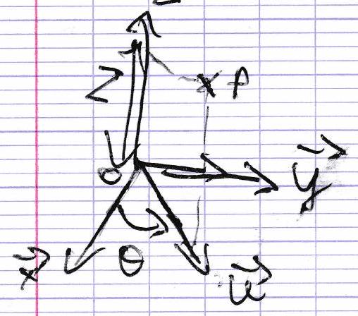 Il est possible de décrire de manière unique la position d’un point dans l’espace grâce à sa projection dans un repère constitué d’un point d’origine et de 3 vecteurs orthogonaux.